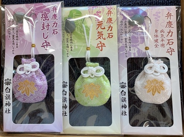 この石にあやかった弁慶の名を冠した病気平癒に関する各種お守りが授与されており、具体的には「弁慶力石 癌封じ守」「元気守」「病気平癒・身体健全守」があります。