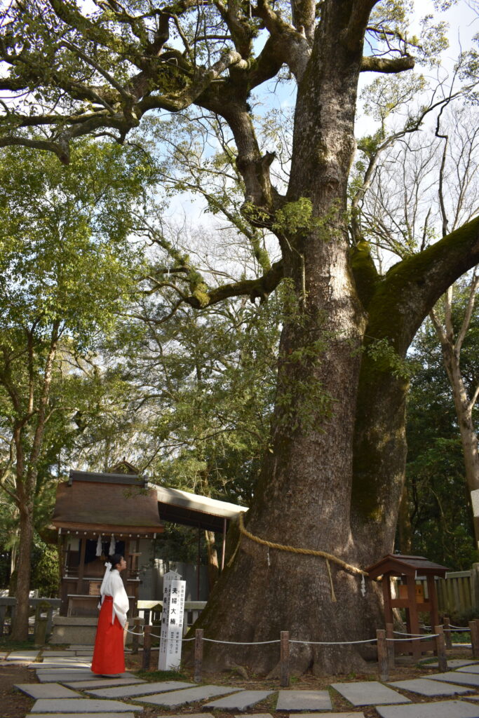境内には樹齢900年とされる「夫婦大楠」があり、二本の楠が根元で一つになっている姿から、夫婦円満、縁結びのご利益でも知られています。この夫婦大楠は、健康祈願の際にも多くの参拝者が手を合わせる場所となっています。
