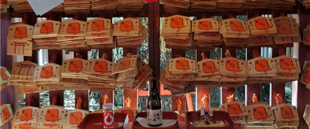 病気平癒に関連するものとして、赤えいをモチーフにしたお守りや懐守があり、財布などに入れて持ち歩くことができます。これらは楠宮稲荷社の信仰に基づいたお守りです。