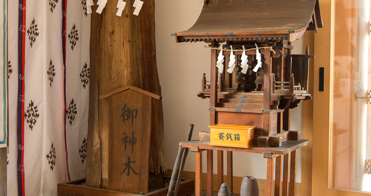 社殿の中に大切に保管されている御神木は、災厄除去、無病息災などのご利益があるとされ、古来から「御神木を両手で触れ、心願を込めれば願いが叶う」「御神木をさすり、身体の悪いところをさすれば、病が治る」と信仰されてきました。