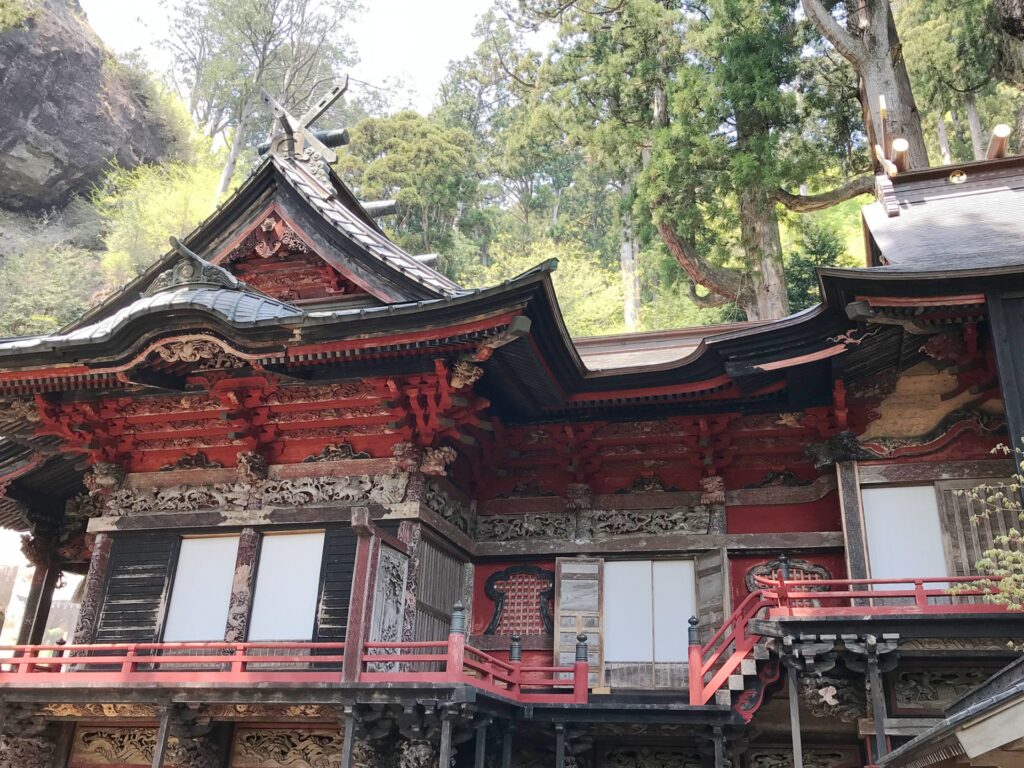境内には市内最古の本殿があり、日光東照宮と同じ時代に彫られた七福神の彫刻が連なっています。本殿の彫刻は関口文治郎の手によるもので、神社の裏側まで見どころが満載です。
