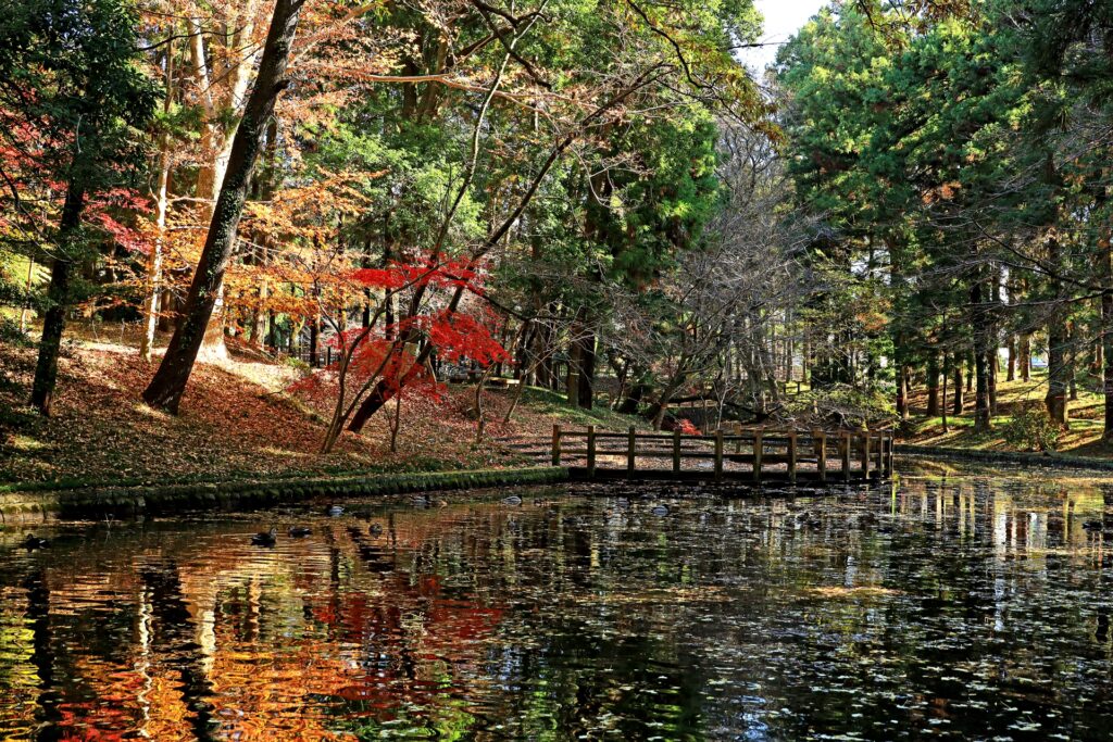 境内には弁天池やひょうたん池が広がる清々しい環境で、二本並んだエノキは縁結びにご利益があるとされ、仲良く寄り添う姿を見ることができます。