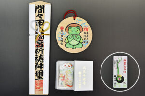 間々田八幡宮の病気平癒守は、同神社を代表するお守りで、このお守りを求めて多くの方が訪れます。また、「無事かえる守り」は江戸時代から伝わる病気平癒・旅行安全のご利益を今に伝えるかわいいお守りです。